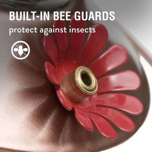 This 12 oz. Nectar Capacity Glass Tube Hummingbird Feeder with Copper Lid and Base combines eye-catching brushed copper and sturdy hardened glass to add a dose of artistic charm while also enticing hummingbirds to drop in for a visit. However, the benefits of this feeder don’t end at its aesthetic appeal. Able to hold up to 12 oz of nectar, this feeder has a wide-mouth bottle to allow for easy filling and cleaning. The red flower-shaped feeding ports are sure to catch the eye of visiting hummingbirds, while the wraparound perch allows multiple birds to rest and feast in style. Best of all, this feeder includes built-in bee guards to defend against unwanted insects.