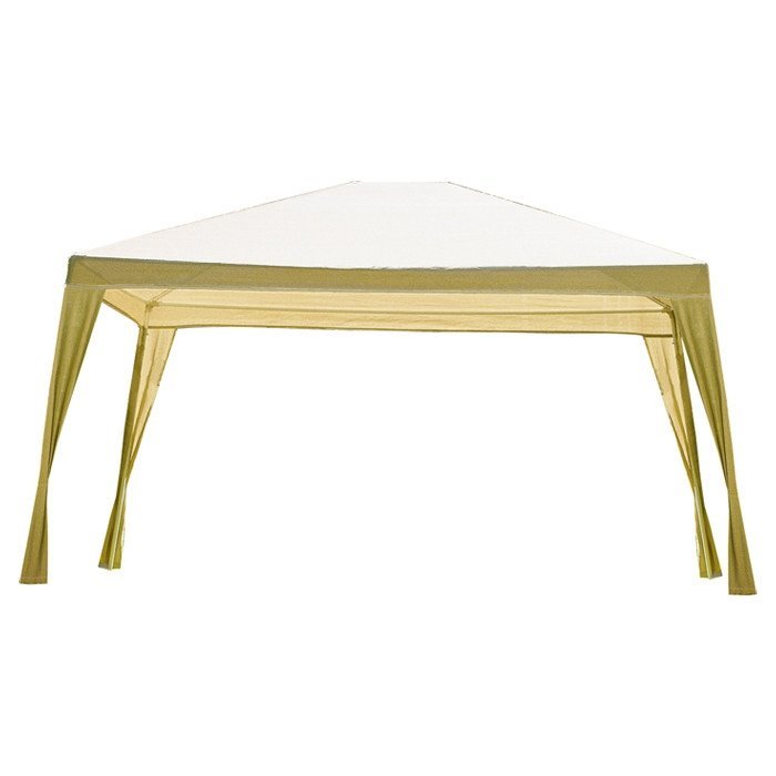This 12Ft x 10Ft Folding Gazebo with Carry Bag in Camel combines knitted fabric with a sturdy aluminum frame to create a lightweight gazebo that is easy to set up and take down. The knitted fabric is made using UV stabilized high density polyethylene materials. Special lock knit construction blocks up to 90% of harmful UV sun rays while generating cooling breezes underneath the shade canopy. The aluminum frame is powder coated to complement the shade canopy. Perfect for picnics, outdoor parties or any other occasion.