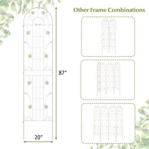 This 2 Pack – 7-ft Galvanized Steel Garden Trellis in White Metal Outdoor Finish is constructed of galvanized steel, ensuring unrivaled sturdiness and rust resistance to hold heavy plant for longer time. The trellis features 10.5″, 11″ long legs, allowing for effortless insertion into the ground, providing a stable foundation. With impressive heights of 71″, the metal trellis offers an expansive area for your climbing plants and vines to reach new heights. By providing an abundance of vertical space, your plants can thrive as they eagerly stretch towards the sun’s nourishing rays. Apart from being used as a plant support for climbing plants. The 2 pack trellis set can be combined with a garden fence, ensuring the protection and privacy of your cherished plants. Plus, you can connect 2 or more trellis in an A-shape frame for growing cucumbers or other climbing vegetables. Designed with enchanting birds, flowers and leaves, the tall garden fence will effortlessly add a touch of timeless elegance and retro charm to your garden, lawn, or yard. Moreover, you have the freedom to arrange more trellises to different layouts according to your unique requirements. Coming with complete components and a detailed instruction manual, the assembly process of the wire lattice grid panel is a breeze. Besides, the 2 pack fence trellises are designed with an effortlessly interlocked connector, allowing for quick setup.