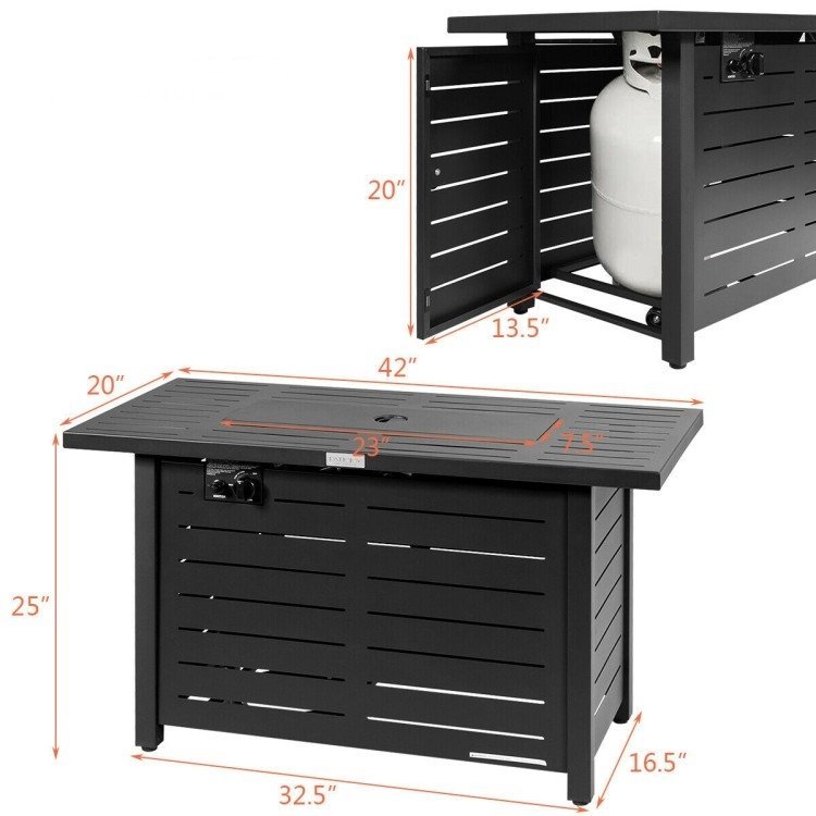 - Fire Pit Dimensions: 42 inches L x 20 inches W x 25 inches H