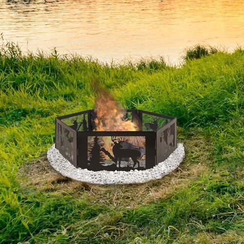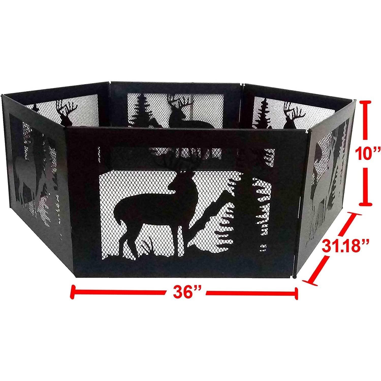 The Deer Print Hexagon Portable Folding Steel Mesh Fire Pit w/ Carry Cas is a one-of-a-kind addition to any outdoor area. The wilderness design is sure to inspire campfire stories for the entire family. It has the capacity to contain a large fire while also folding down flat for easy transport. Store the folded ring in its carrying case that is included for maximum portability.