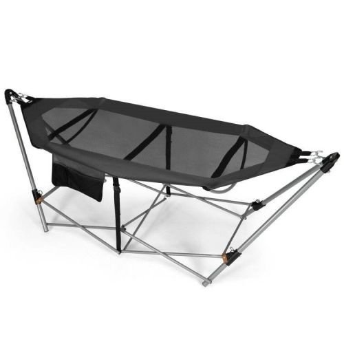 Grey Portable Camping Foldable Hammock with Stand and Carry Case