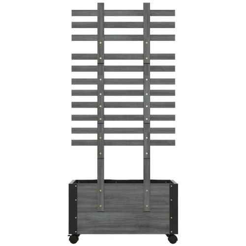 Modern Farmhouse Grey Wood Raised Garden Bed Planter on Wheels with Trellis