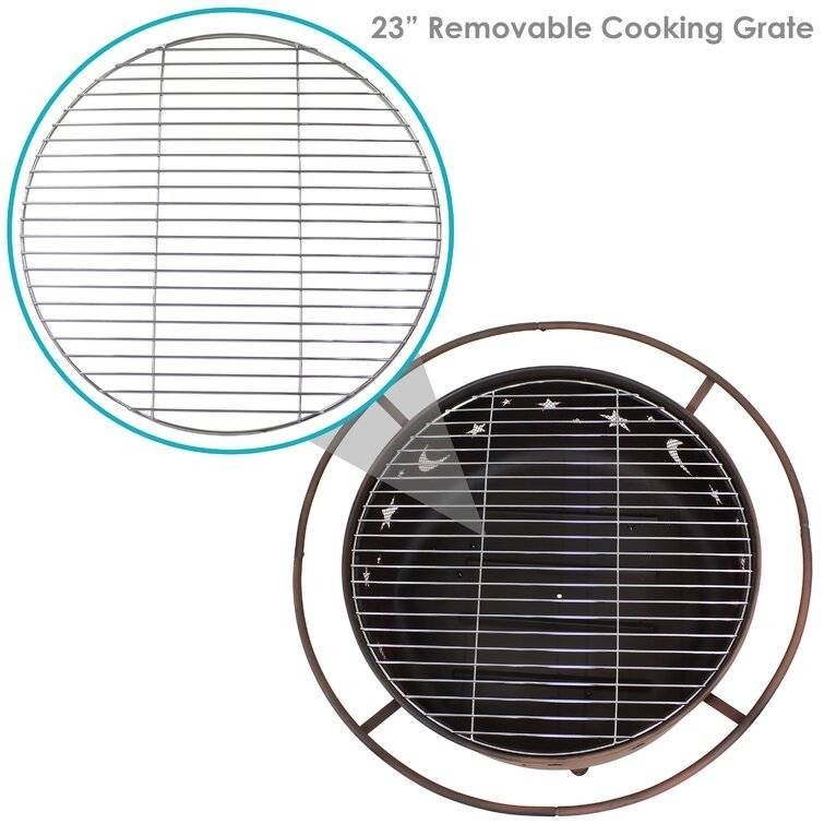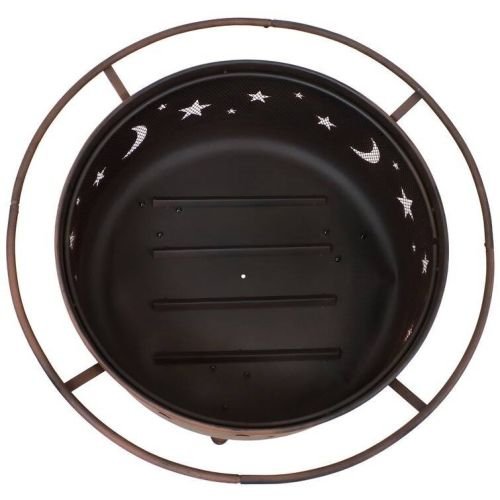 A warming addition to any backyard patio or deck, this Moon Stars Steel Fire Pit Bowl with Screen Cooking Grate and Poker features unique and stylish cutouts that create an incredible fire ambience at night.