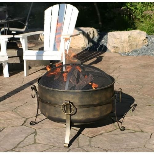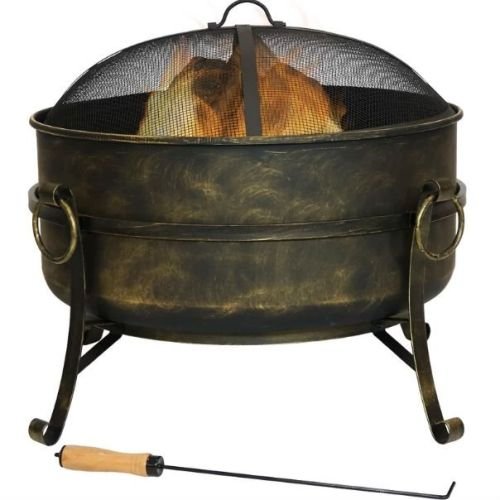 - Outdoor 24-inch Diameter Steel Cauldron Wood Burning Fire Pit