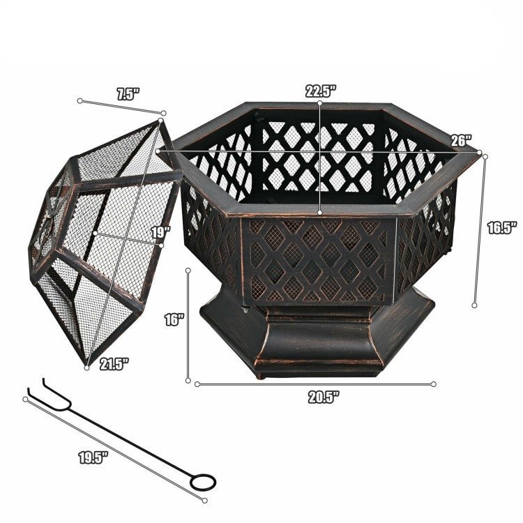 With a deep bowl you can enjoy the warm bonfire along with family and friends in late autumn or cold wintr with this Portable Hex Shaped Wood Burning Fire Pit with Cover and Poker. Comes with a poker and a mesh cover to use the fire pit safely and conveniently.