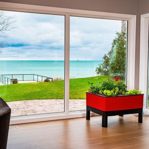 Got plants? Grow food, anywhere with the flashy Red Mobile 33.5 in x 24.25 in x 23 in Self Watering Raised Garden on Wheels. Grow high-nutrient micro-greens with the perfectly sized footprint to fit a standard 10 x 20 tray. Grow your own organic salads, greens and herbs indoors through the winter. Get a head start by starting your seeds early. Or, once the summer arrives bring the garden outdoors for natural light. Self-watering tub, once your garden is established with deep roots, you can water your garden with the self-watering feature this brings water to where the plants need it most – at the roots, and it allows you to not have to water every day.