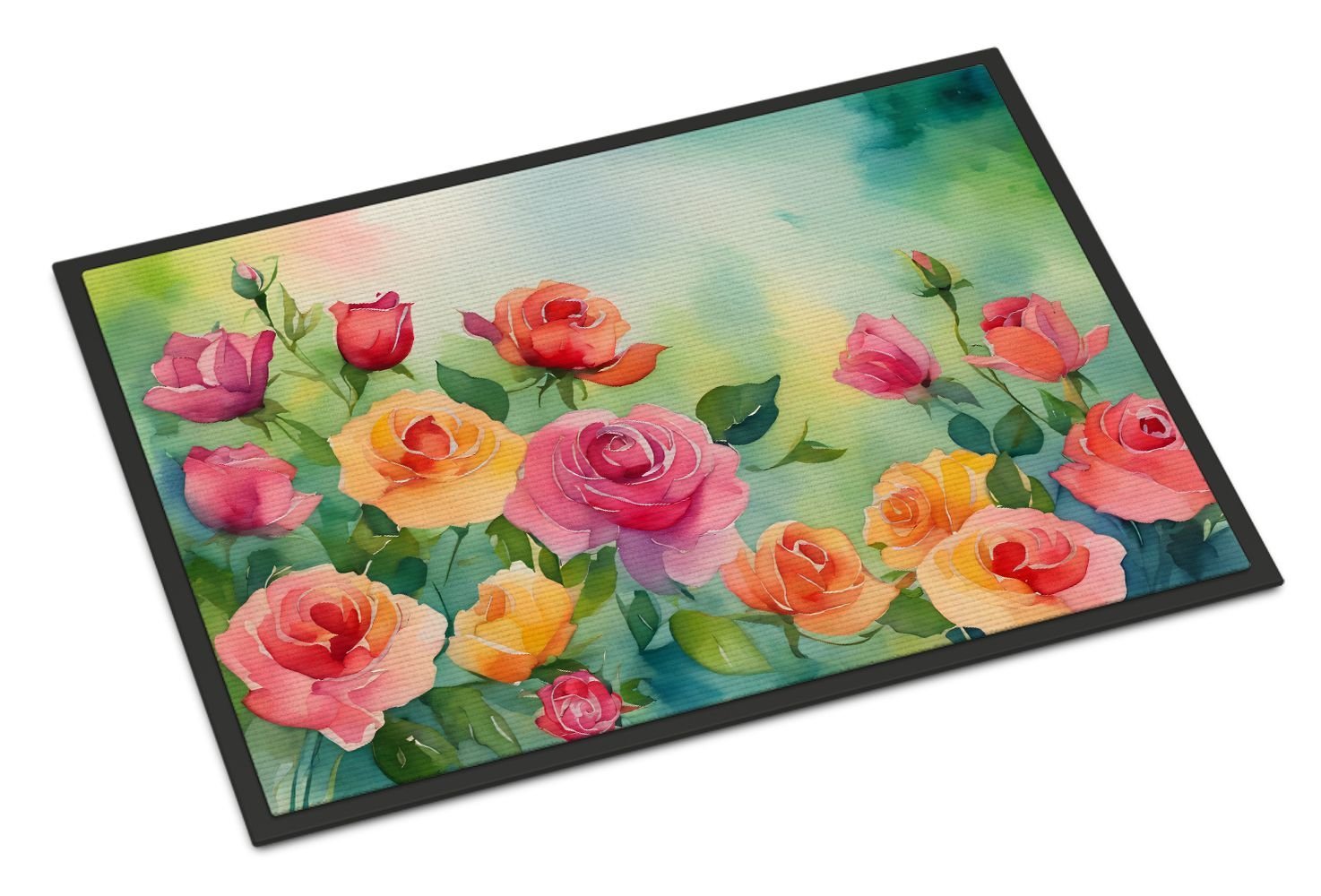 Roses in Watercolor Doormat Front Door Mat Indoor Outdoor Rugs for Entryway, Non Slip Washable Low Pile, 24H X 36W