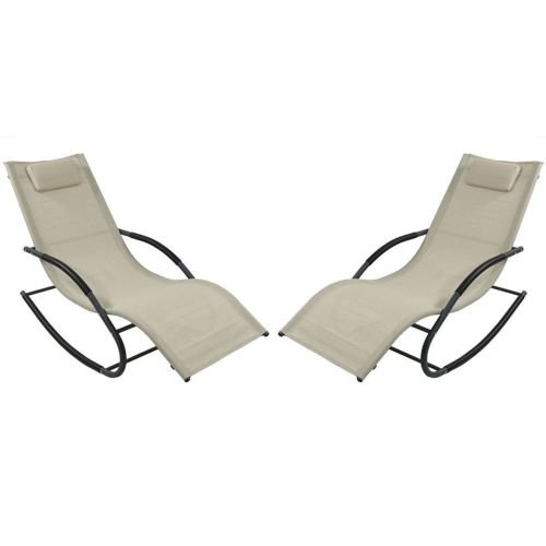 Add comfort and sleek contemporary charm to your space with this Set of 2 – Rocking Chair Chaise Patio Lounger with Pillow, Beige. These rocking chairs are specifically designed for placement in the outdoors, as they feature weather-resistant 70% vinyon and 30% polyethylene seat material. Plus, they come with a pillow that attaches and detaches with hook and loop fasteners so you have added head support.