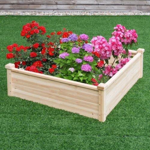 - Solid Fir Wood 3.3 ft x 3.3 ft Raised Garden Bed Planter Box