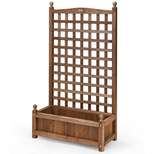 - Solid Wood Farmhouse Garden Planter Box with 48-inch High Trellis
