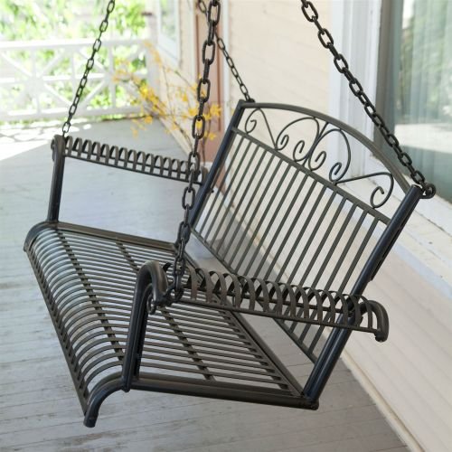 - Wrought Iron Outdoor Patio 4-Ft Porch Swing in Black